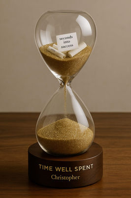 When flipped, the hourglass became a reminder that value isn’t measured in hours worked, but in what those hours built together.
